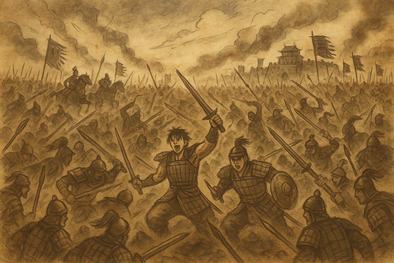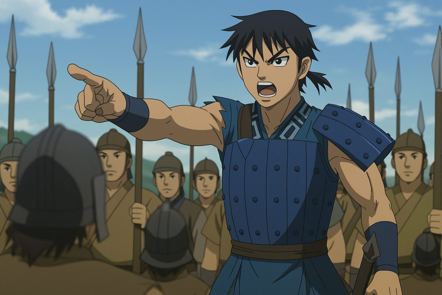 新兵選抜の日。訓練場には、荒々しい息づかいと、緊張に満ちた空気が漂っていました。信が一歩前に出て、新兵たちを見渡す。その視線には厳しさと優しさが同居している。彼はもう、かつての「突っ走るだけの少年」ではない。仲間の命を背負う男の目をしていました。