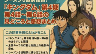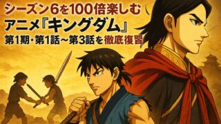 「キングダム」シーズン6が放送直前に迫る中、第1期の物語を振り返りたい方も多いのではないでしょうか。本記事では、『キングダム』第1期の第4話〜第6話の見どころを徹底解説。信と漂、政の関係性、そして激動の展開が続く初期エピソードの要点を整理し...